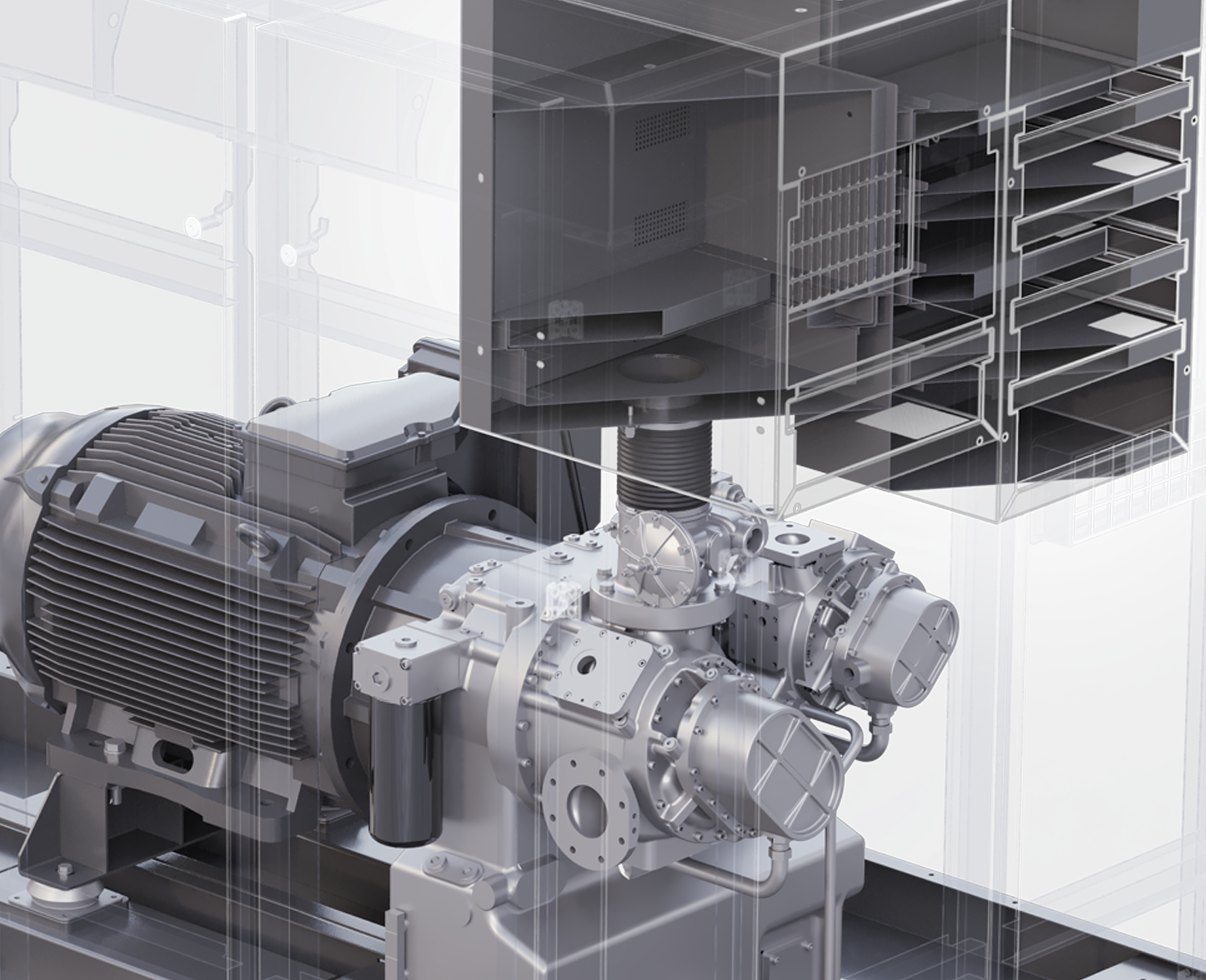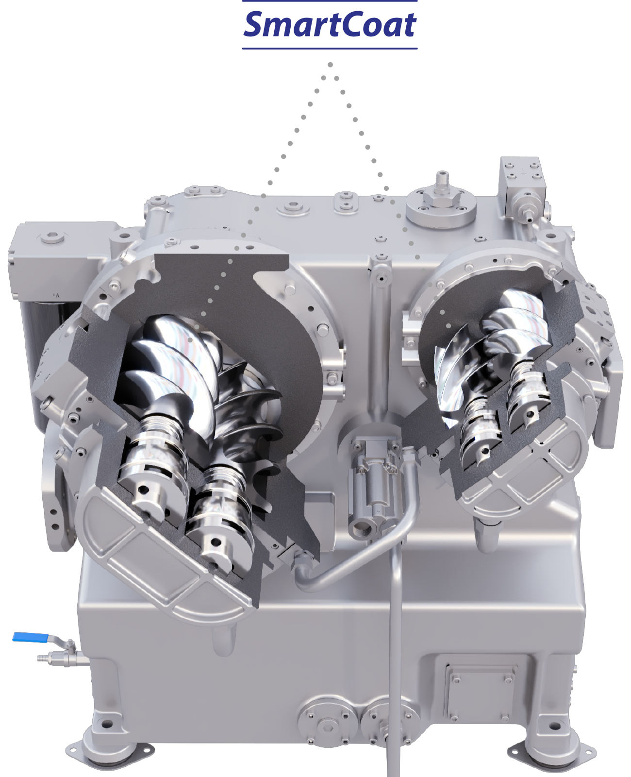 • Rotorların ve rotor gövdesi iç parçalarındaki özel kaplama sayesinde minimum boşluk toleransı ve yüksek verimlilik