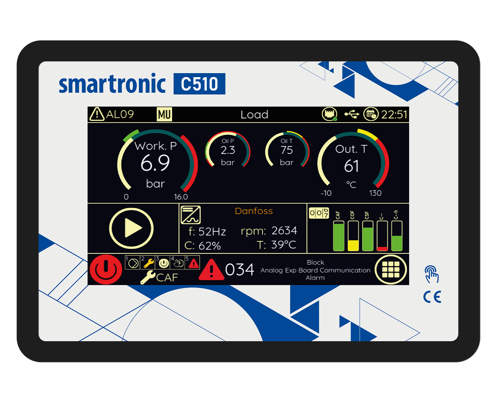 • İnvertörlü modellerde sıcaklık PID’si ile vida bloğunun en verimli çalışma sıcaklığını korumak için fan hızının kontrolü
