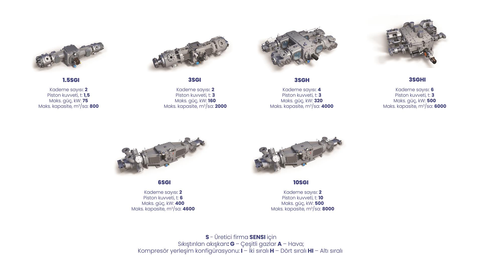 Kullanım Amacı: Örneğin; gaz basınçlandırma ünitelerinin çalışması sırasında teknolojik süreçleri desteklemek, birlikte çıkan Petrol Yan Ürün Gazını (APG) ana boru hatlarına enjeksiyon için sıkıştırmak ve doğal gaz dolum istasyonları gibi düşük giriş basıncıyla çalışan istasyonlarda ön sıkıştırma işlemi için takviye kompresörü olarak hizmet vermek üzere tasarlanmıştır. Ayrıca, hava ayrıştırma tesislerinde azot ve oksijen üretiminde de kullanılmaktadır.