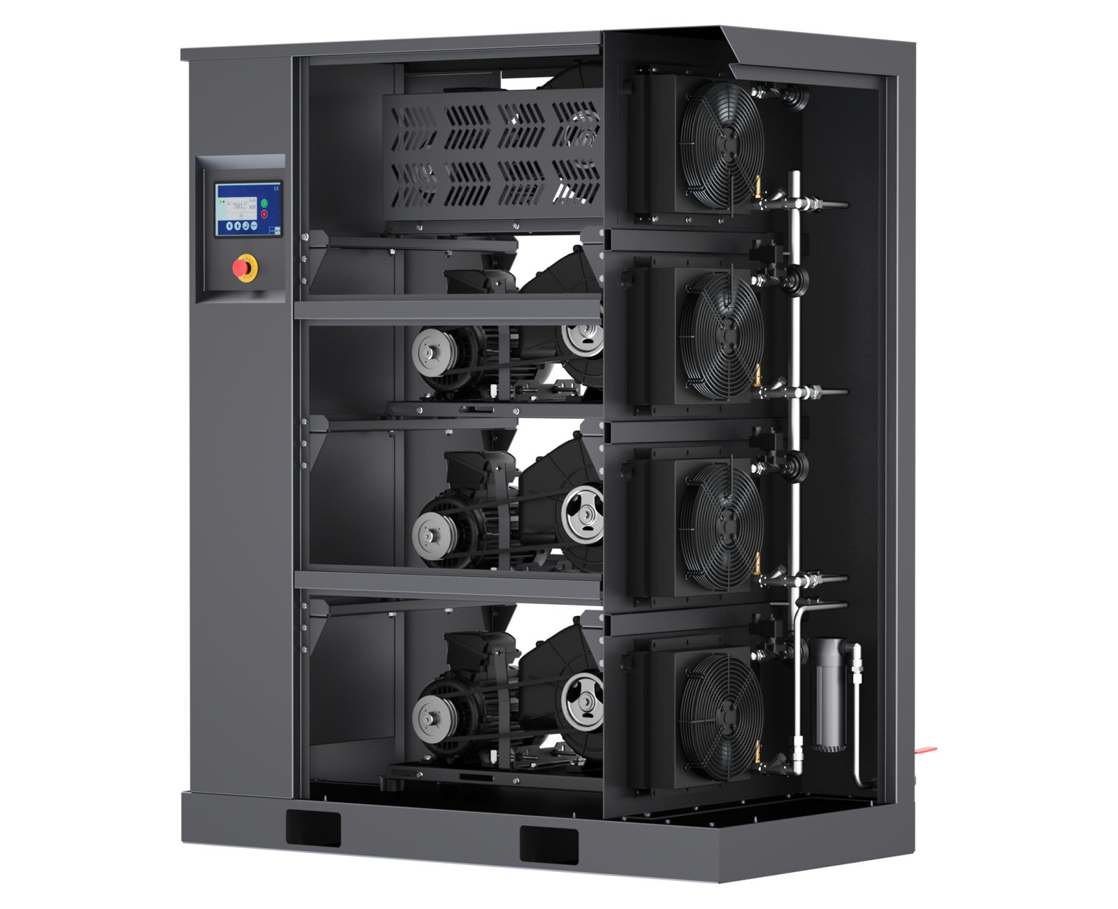 Dahili hava soğutucusu (soğutucuları), su separatörü ve paslanmaz borulama