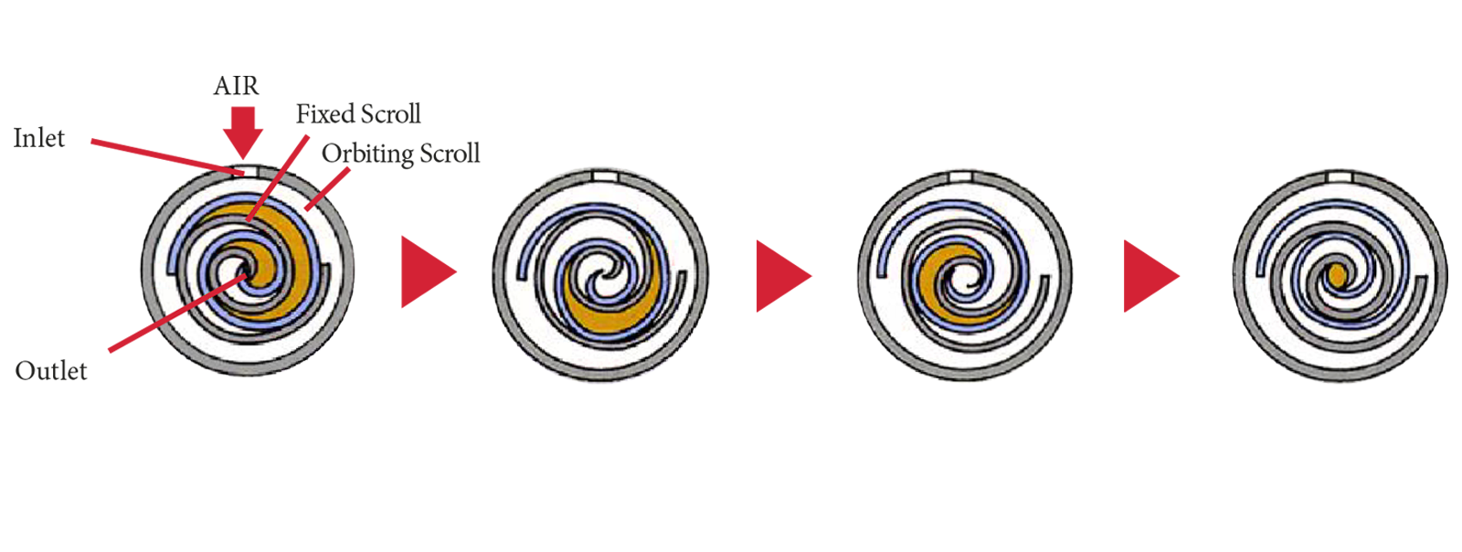 Yörüngeli spiralin sürekli hareketiyle, atmosferden gelen havayı sıkıştırır, yağsız ve kirletici madde içermeyen hava yaratır.