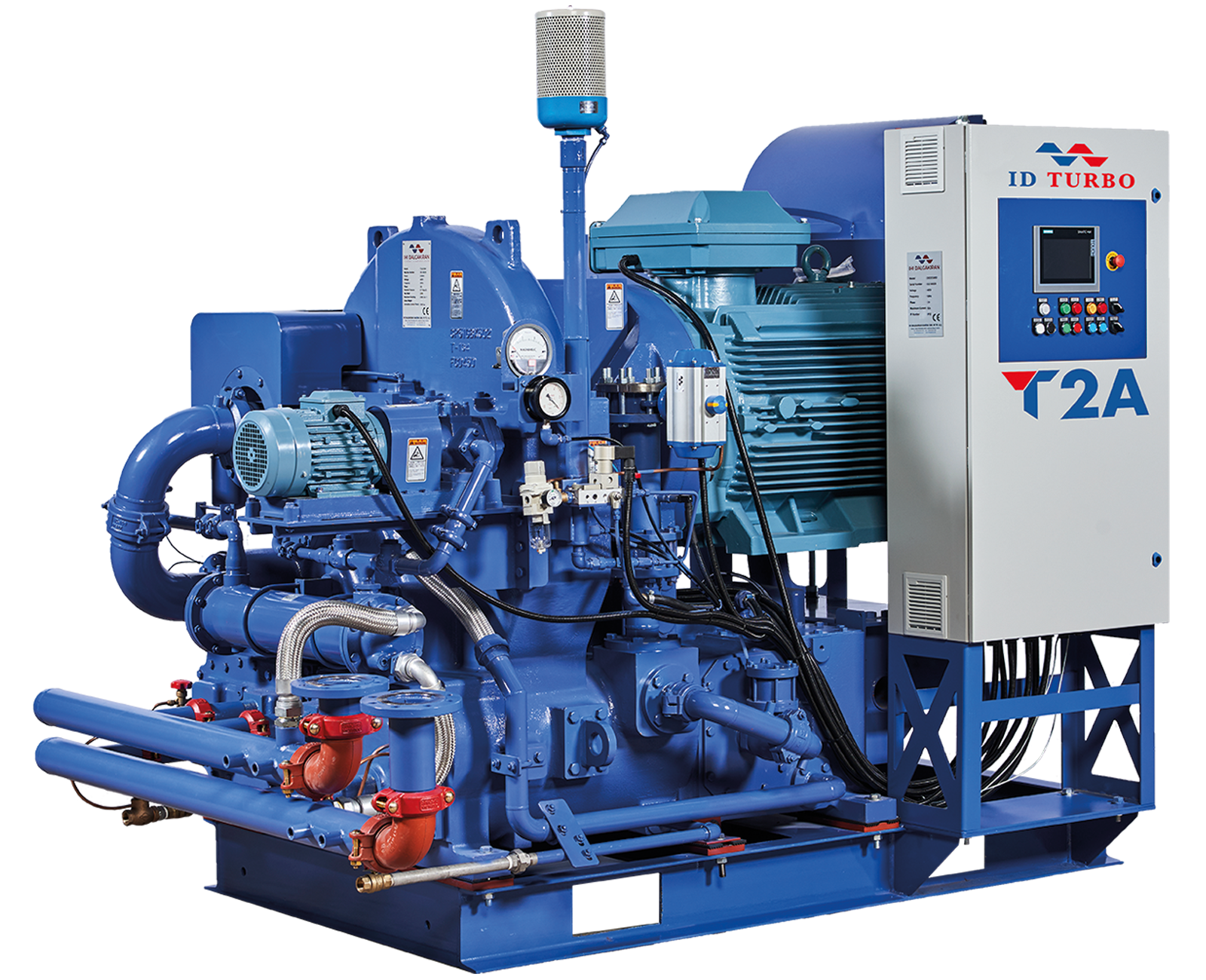 T2A series consists of vital components, such as air cooler, main motor, control panel, gear box, suction filter and all these will be fitted into one compact package. This simple design allows for smaller installation space and shorter installation time. The structure of the robust gear box provides the customers with high reliability by utilizing tilting pad journal bearing, customized core parts(Impeller, diffuser). These parts are designed with anti-wearing technology, built for long life and stable operation.